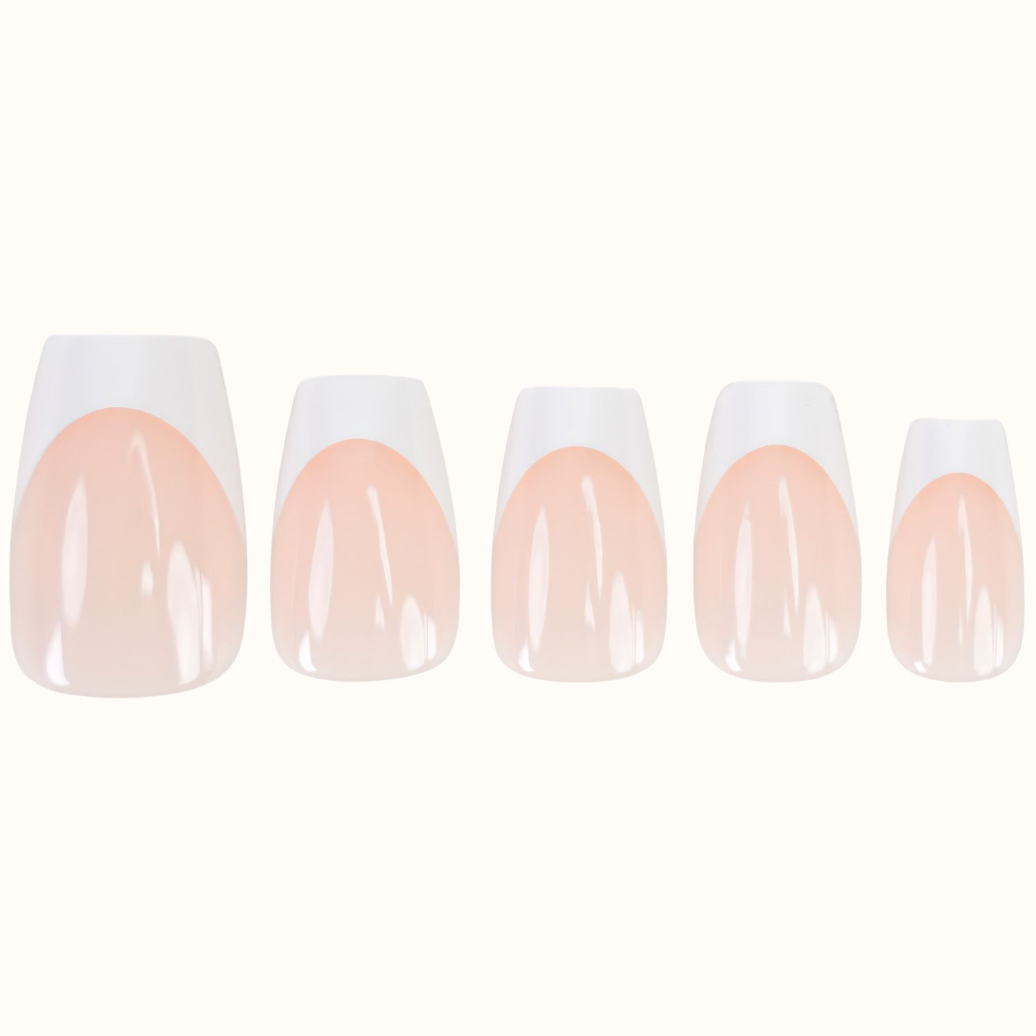 Excuse My French inneholder: 24 løsnegler i 12 størrelser, negletape (24 biter), neglelim (2g), neglefil, alcohol pad og manikyrpinne.