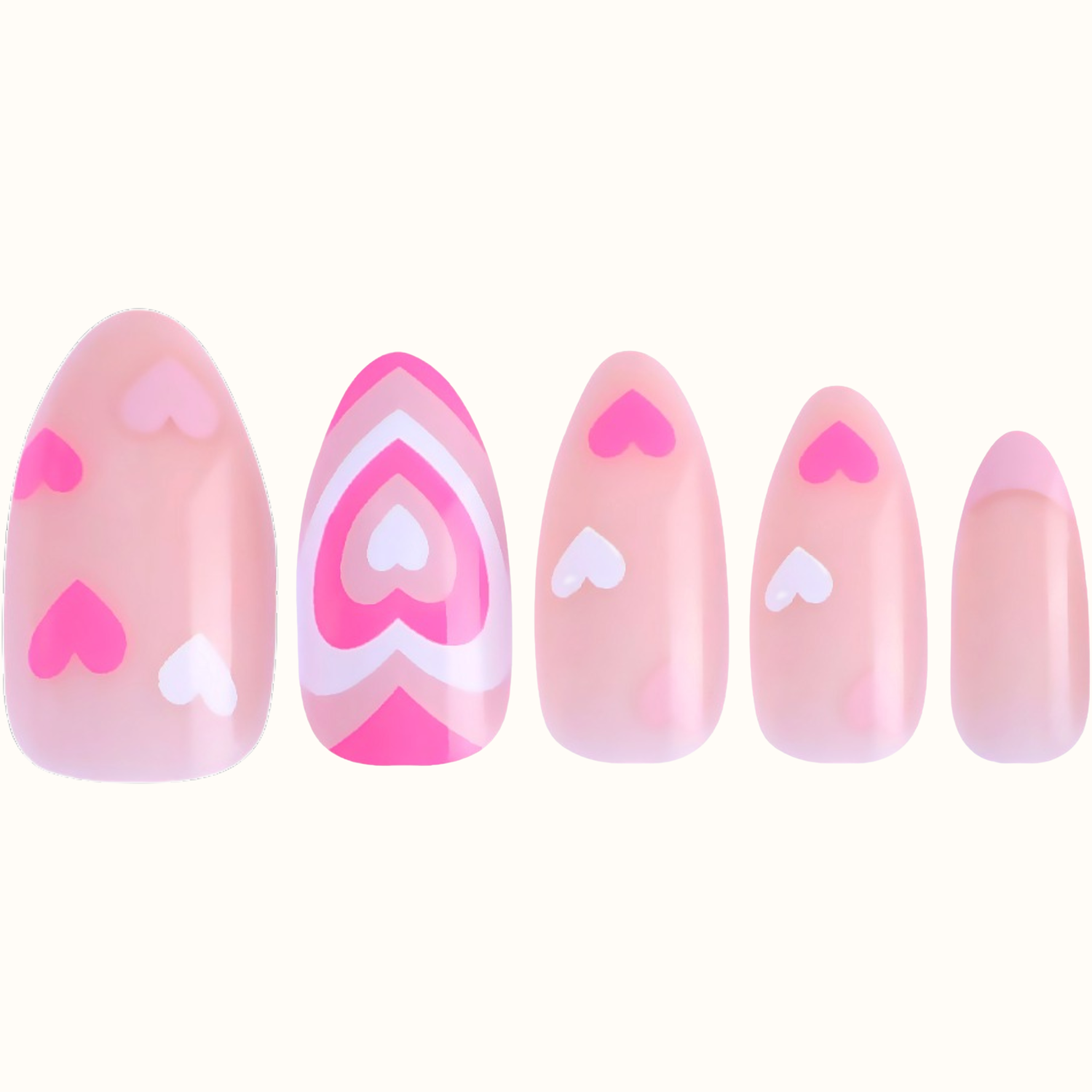 First Date inneholder: 24 stk. løsnegler i 12 størrelser, negletape (24 biter), neglelim (2g), neglefil, alcohol pad og manikyrpinne