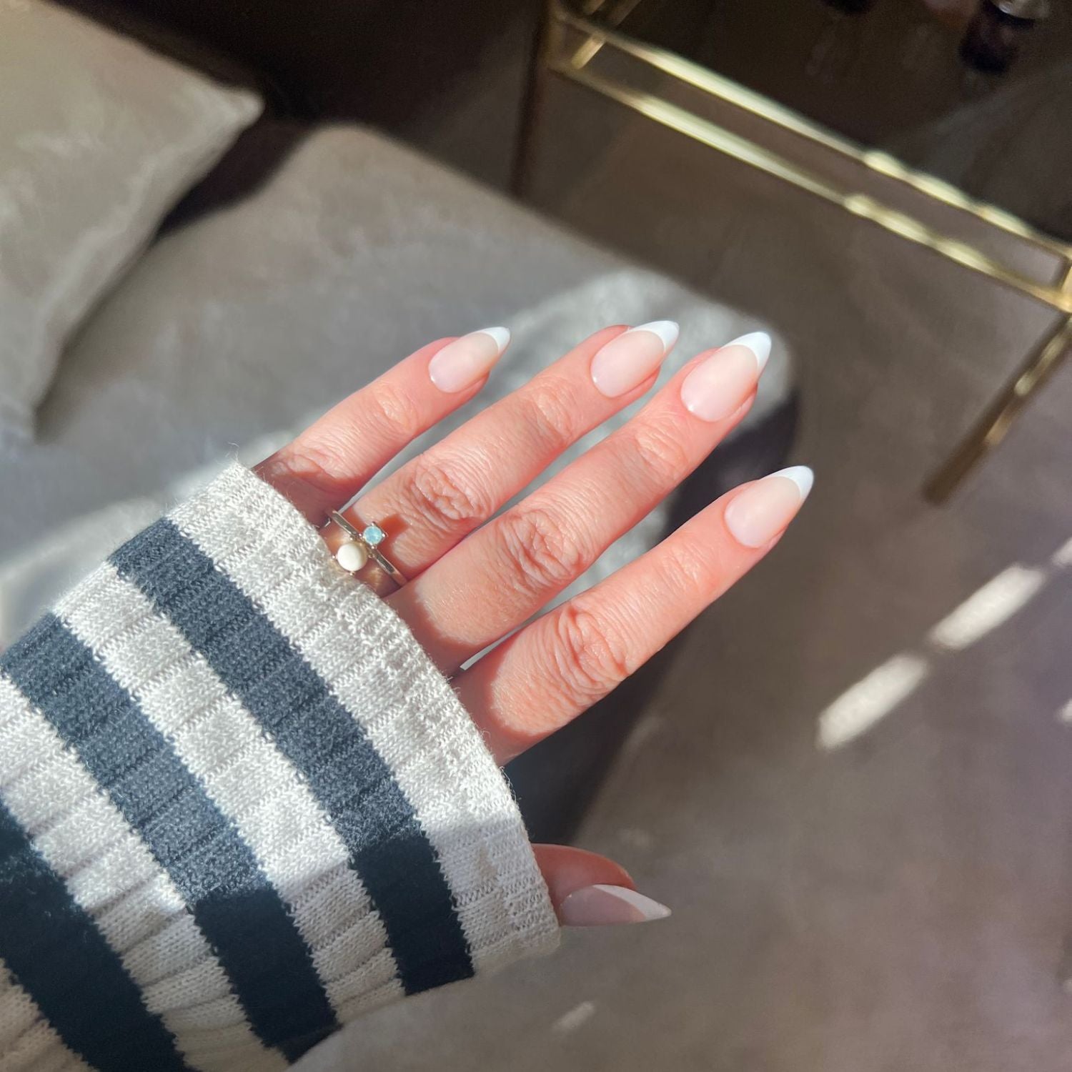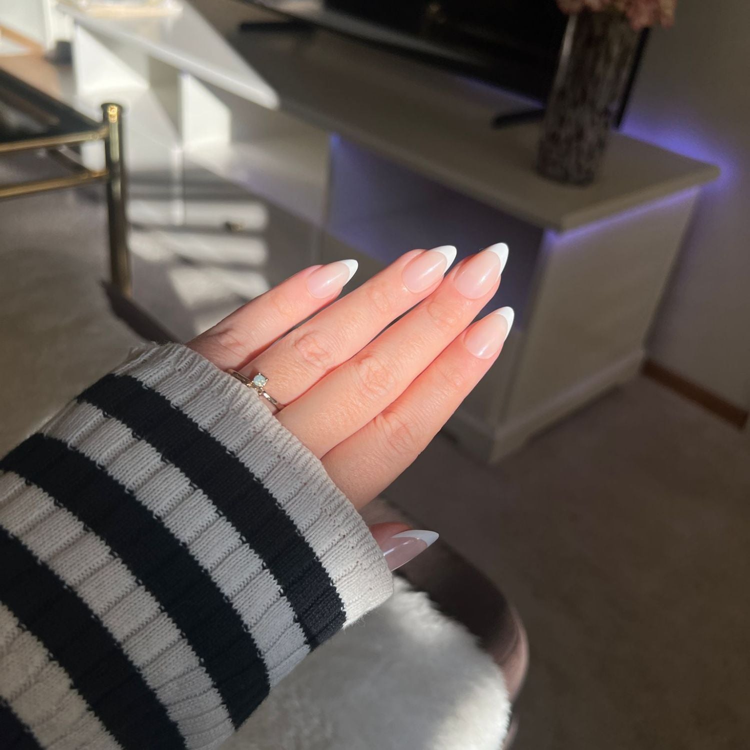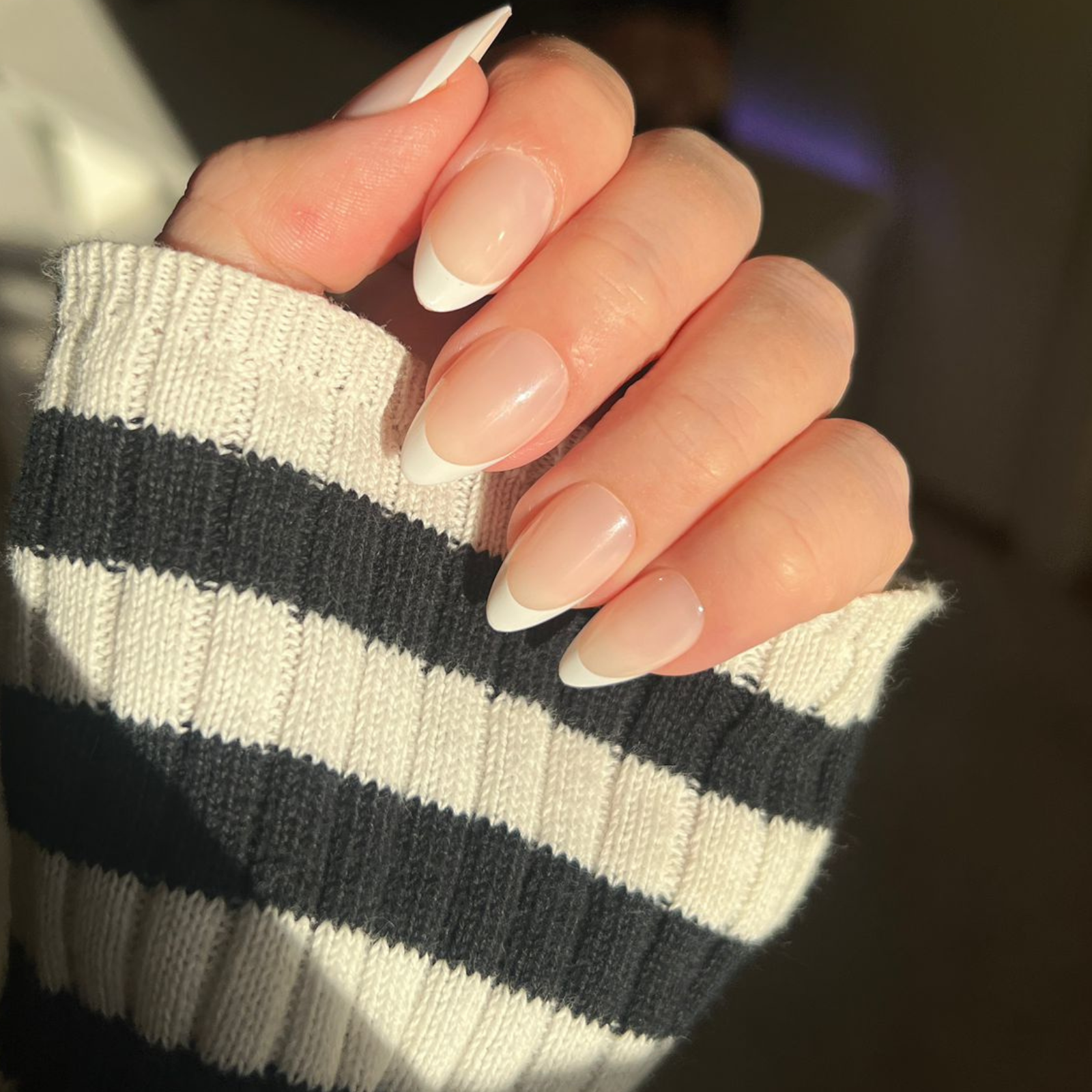 Almond French inneholder: 30 stk. løsnegler i 15 størrelser, negletape (24 biter), neglelim (2g), neglefil, alcohol pad og manikyrpinne.